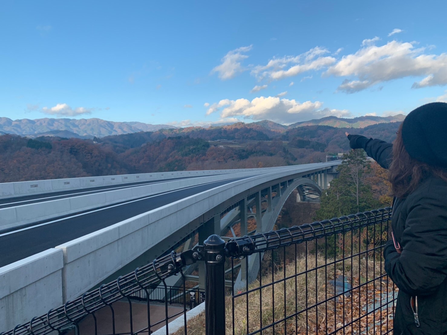 三遠南信自動車道の橋で 自動車道の下を歩行者が歩いて渡れます